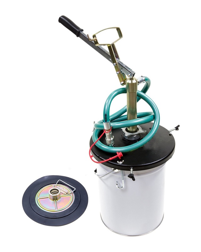 Täcklock för både plåt och plasthinkar. Förskruvning mellan pump och fatlock i metall. Följelock med ”styrning” mot pumprör pump. Med snabbkoppling hona på slang och medföljande hane inv R3/8.