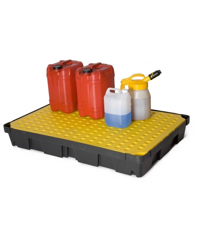 Spilltråg för mindre behållare typ dunkar och flaskor. Uppsamlingskar för ca 100 liter. Används som säkerhetsbehållare om ett läckage skulle uppstå.