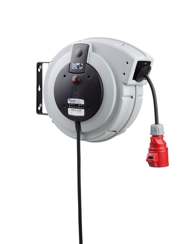 Kabelupprullare proffsmodell för frekvent användning. Material av slagtålig termoplast med svängbar upphängningsbygel. Kan monteras på vägg eller i tak med passande skruvar eller pluggar.