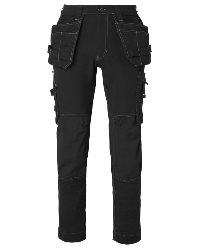 Hantverksbyxa i modern passform i 4-vägs stretch. Byxan har förböjda ben och knäfickor av Cordura®. Knäskydden kan placeras i två nivåer. Två framfickor. Två förstärkta bakfickor med bälg. Löst hängande spikfickor förstärkta med Cordura®.