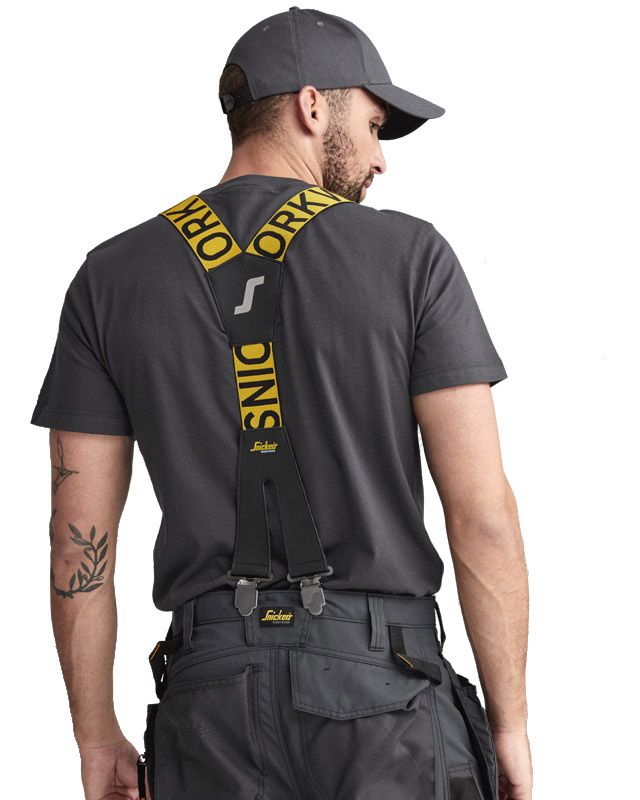 Ergonomiska hängslen med breda elastiska band som fördela din last. De tätt placerade clipsen håller byxorna på plats och säkerställer din arbetskomforten.