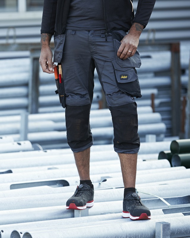 Stretchig piratbyxa med hölsterfickor, designad för arbetskomfort.