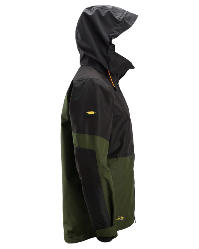 Jackan har även en justerbar huva som kan förvaras i kragen, flera inner- och ytterfickor, justerbar elastisk dragsko nedtill samt justerbara ärmslut.