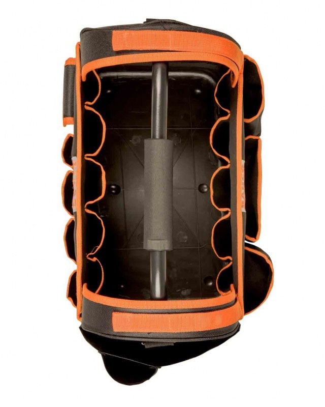 Verktygsväska som rymmer 24 liter och är öppen upptill gör verktygen lättåtkomliga