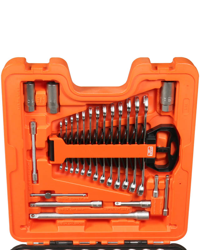 Hylsnyckelsats, 138 delar med 1/4”, 3/8” och 1/2”hylsor och tillbehör, u-ringnycklar, tuppfotsnycklar(kråkfot) och ett komplett bitssortiment. Den mest kompletta av Bahcosatserna i plastlådor!
