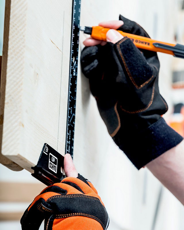 Ligger kvar på arbetsstycket. Lätt avläsbara, vita måttskalor på båda sidorna.
