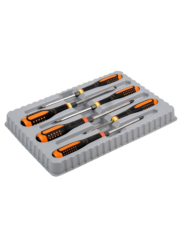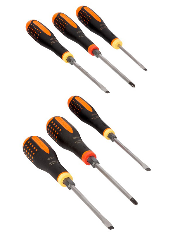 Sats med 6st skruvmejslar ERGO™, genomgående klinga. Med sexkantklinga, för spår och Phillips®-skruv.