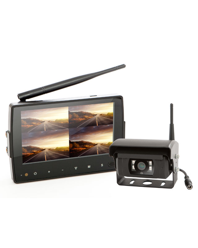 Trådlöst back-tv set med HD kvalité (720p). Paketet levereras komplett med 7” monitor samt kamera. Möjligt att ansluta upp till fyra kameror från GVP HD serie. Användaren erbjuds möjlighet att visa bild från fyra anslutna kameror samtidigt. Lätt att installera då man slipper dra kabel mellan monitor och kamera. Med monitor medföljer solskydd, fästen och fjärrkontroll. Kameran har fyra infraröda ljus som ger mörkerseende funktion på upp till 10 m som aktiveras per automatik när det skymmer. backkameran har dessutom motordrivet linsskydd.